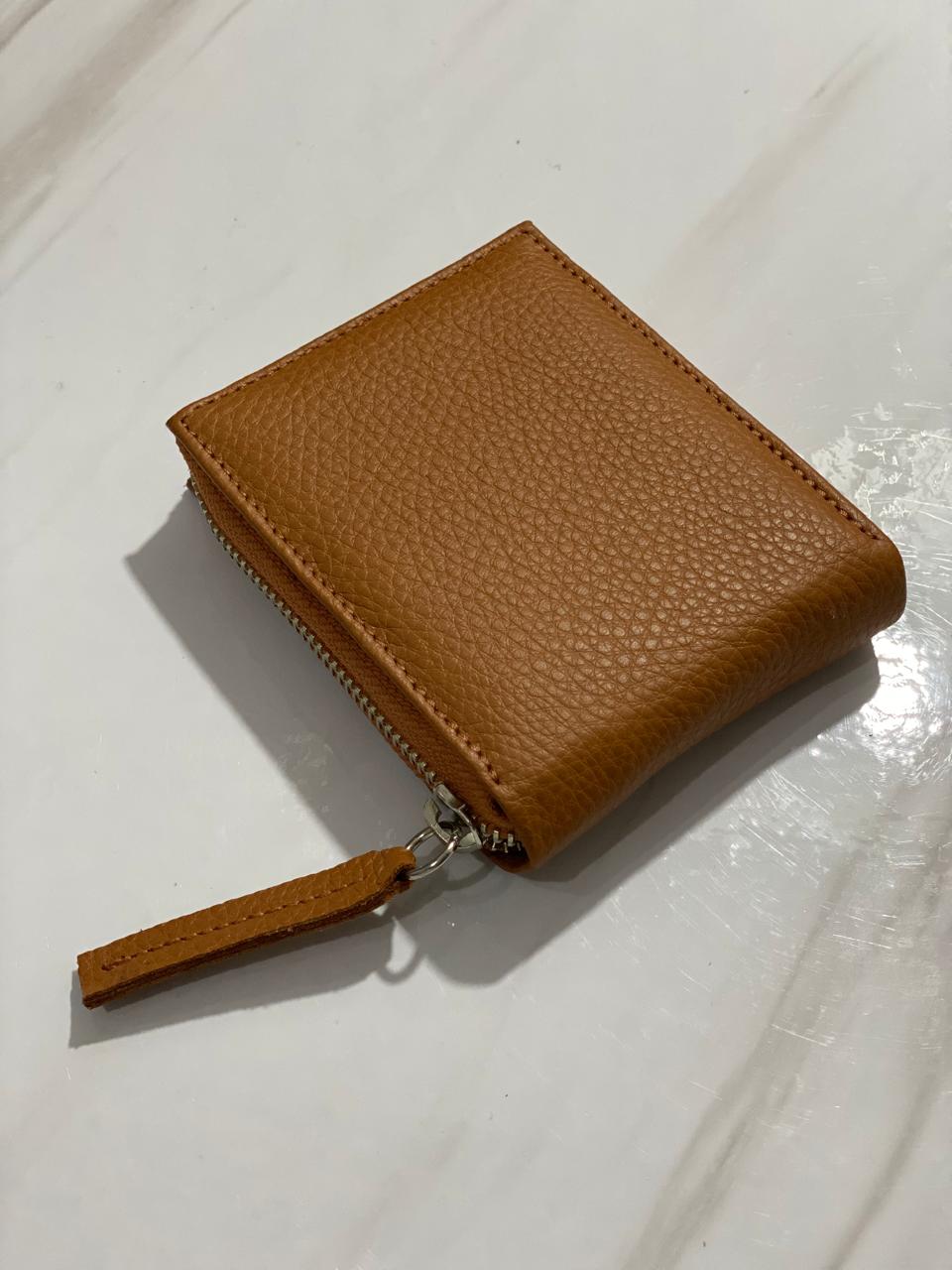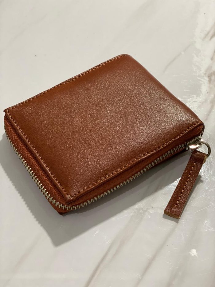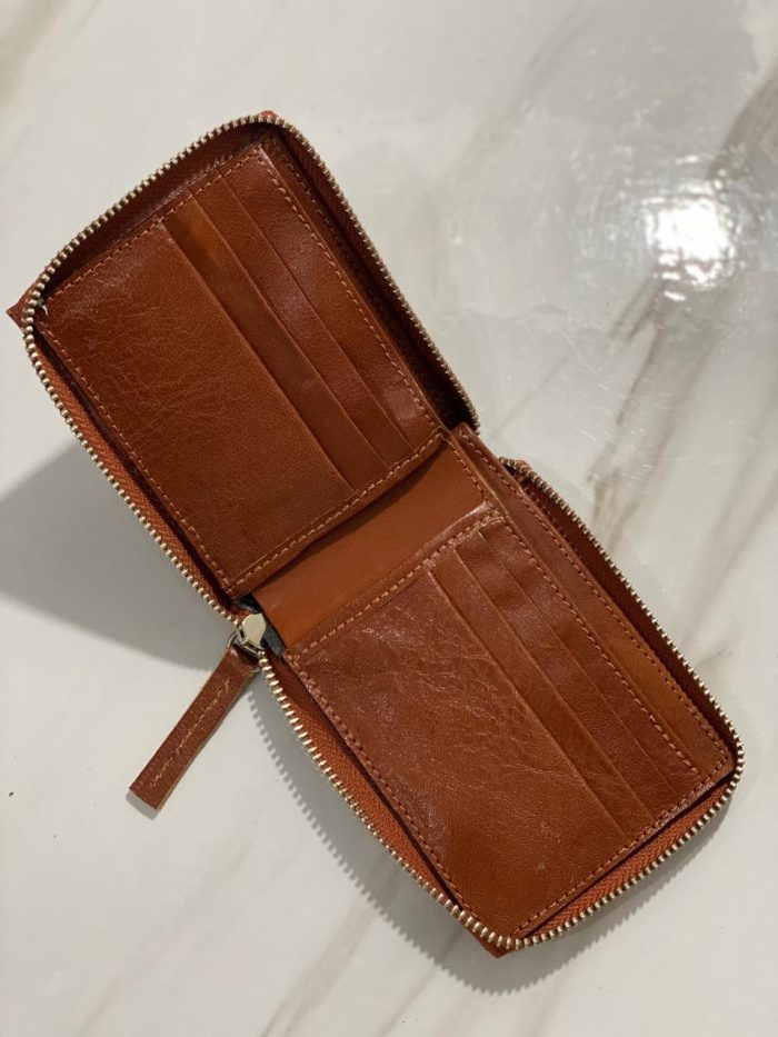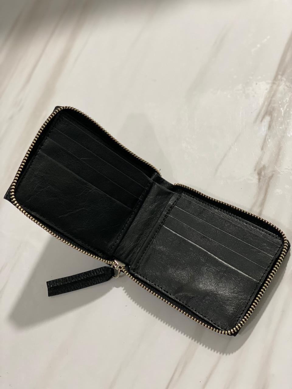 Billetera confeccionada en cuero vacuno, con cierre metálico.