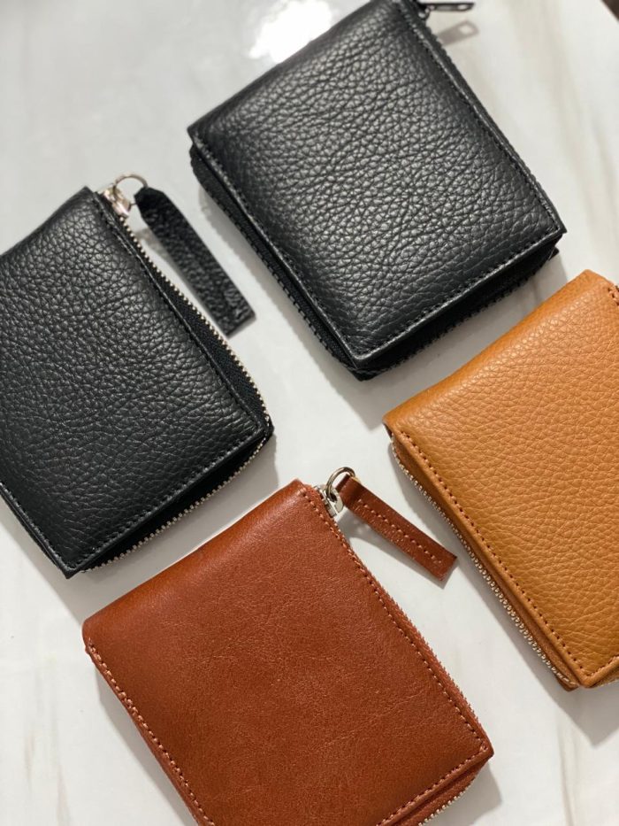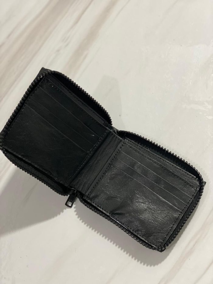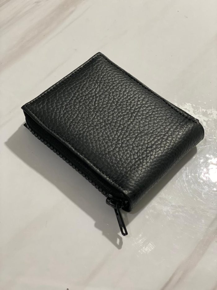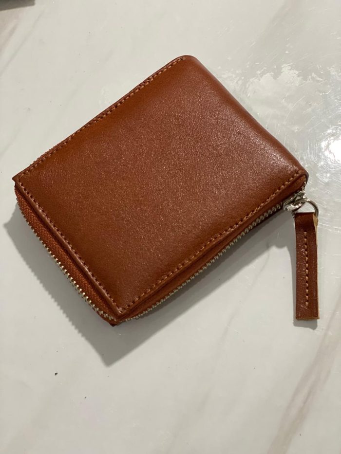 Billetera confeccionada en cuero vacuno, con cierre metálico.