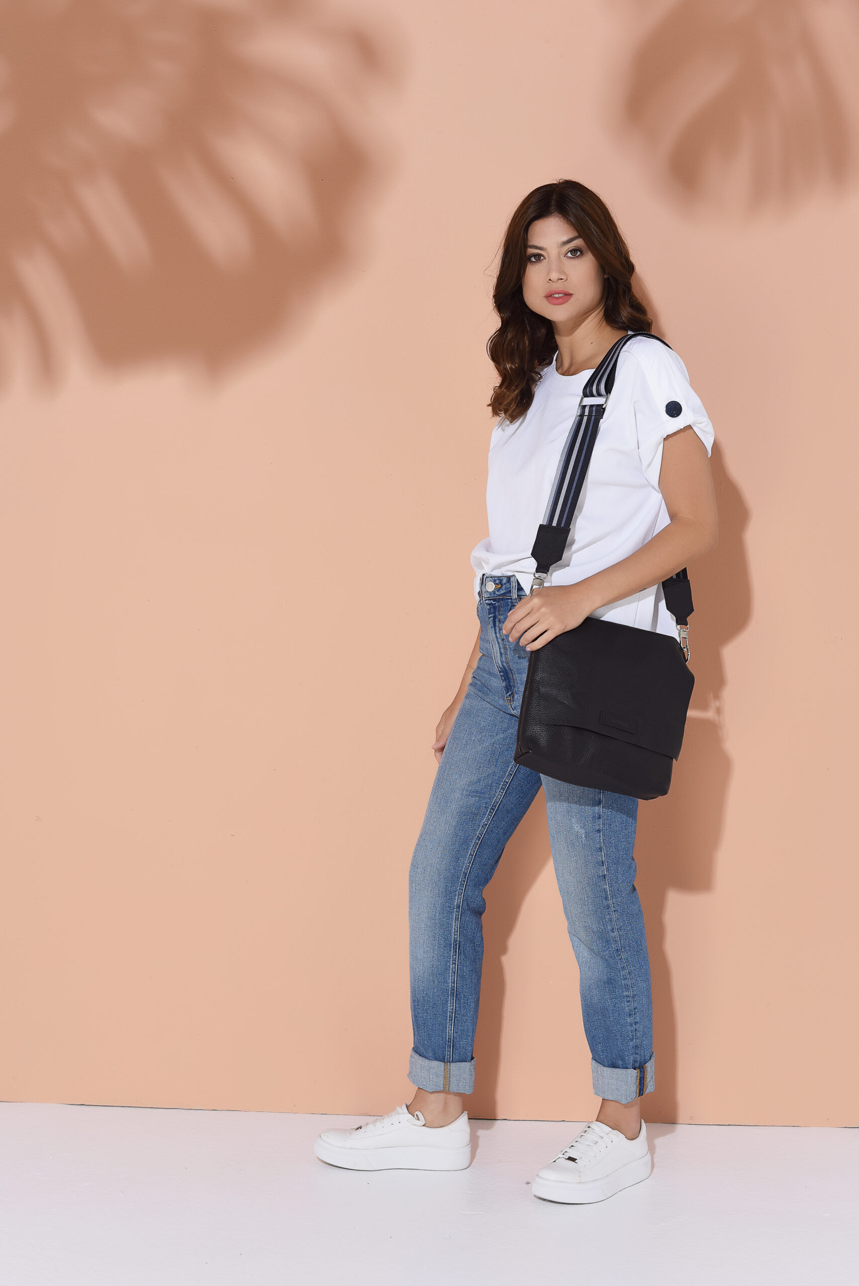 La correa es de cuero desmontable y regulable hasta 1,2 Mts. Se puede optar por una correa de cinta, en tal caso consultar los diseños disponibles.