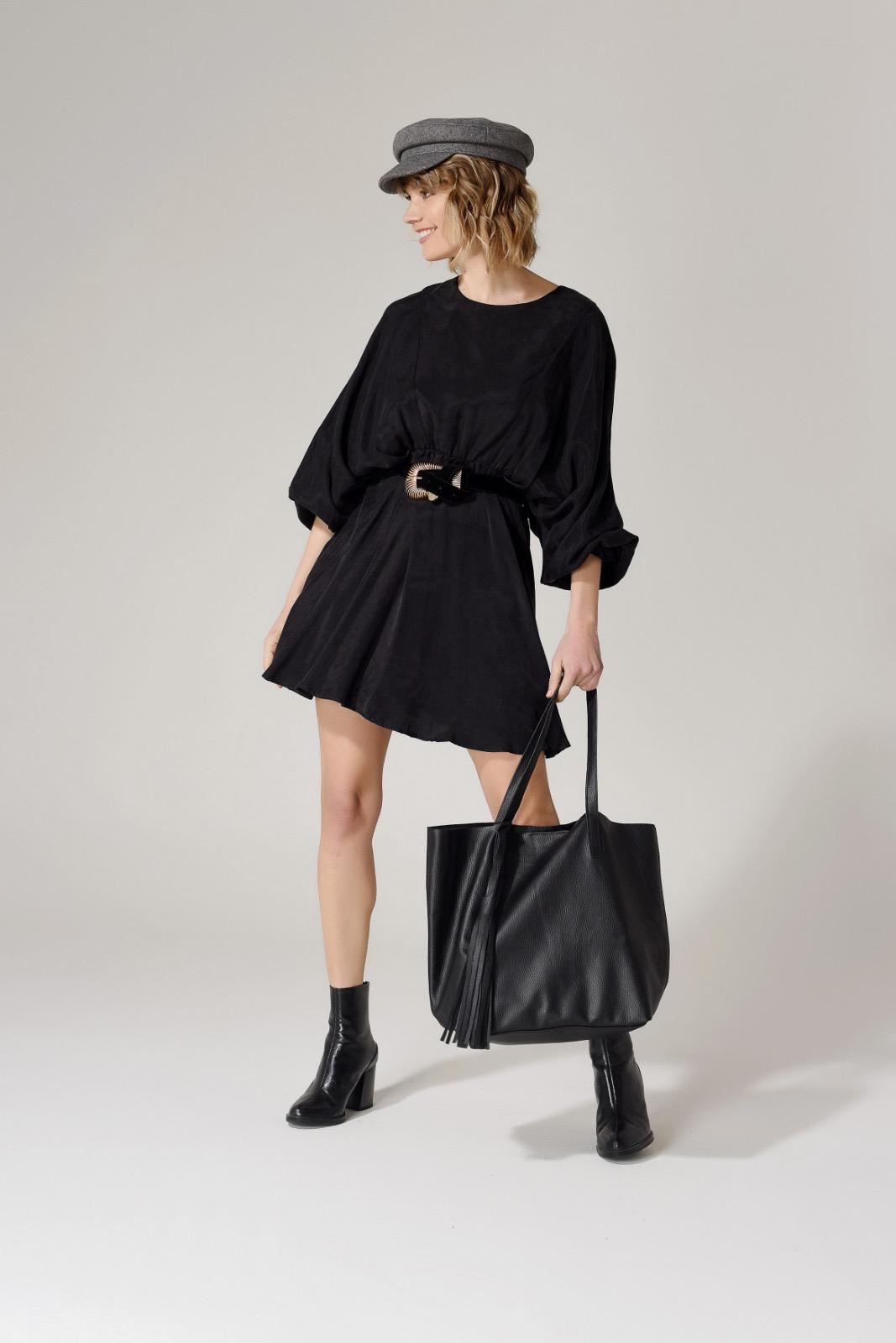 Confeccionada en su totalidad con cuero vacuno, sin forro de tela para apreciar la textura del cuero. Contiene un bolsillo de cuero en su interior con cierre, un llavero y se cierra con broche imantado.